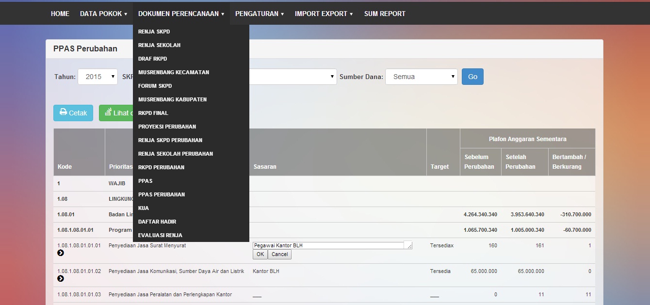 Aplikasi E-Planning adalah aplikasi yang khusus dirancang untuk membantu memudahkan Bappeda dan SKPD lainnya menyusun dokumen perencanaan yang selama ini masih manual. Aplikasi E-Planning Bappeda