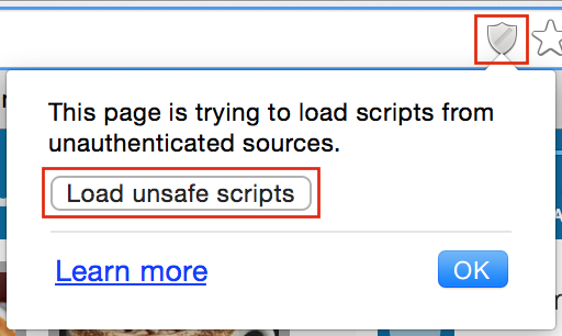 Peratama mencoba https langsung dapat masalah. Muncul pesanĀ “Laman ini mencoba memuat skrip dari sumber yang tidak diautentikasi”. Bersarkan petunjuk dari google ternyata ada script yang